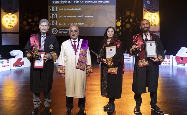 65 yıllık tarihe sahip olan bu bilim yuvasının özellikle son yıllarda dünyanın saygın sıralama kuruluşlarında üst basamaklarda yer aldığını ve bunu da bir kültür haline getirdiğine dikkat çeken Prof. Dr. Kalınlı, bugün de düzenlenen ödül töreninin Atatürk Üniversitesinin başka bir kültürünü yansıttığını ifade ederek, ödül alan tüm bilim insanlarını kutladı ve başarılarının devamını diledi.