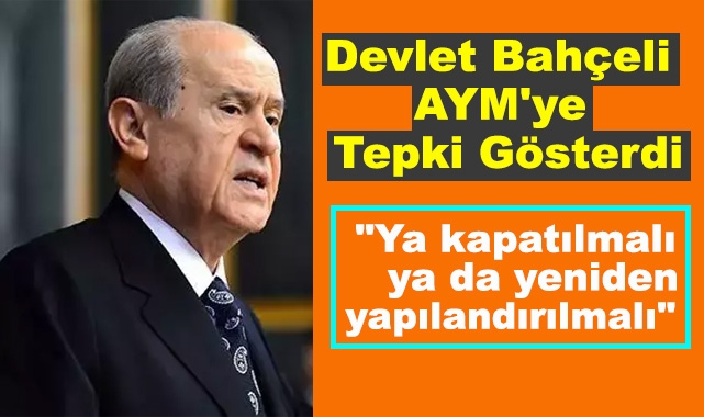 "AYM Başkanı, zillet ittifakının hastalıklı koludur. Bunu reddiyoruz! Bu kişinin haddini ve hududunu çok açık şekilde aştığını düşünüyoruz. Türk devletiyle uğraşma! Cesaretin varsa Kandil'e git! Mahkeme başkanı, objektifliğini ve tarafsızlığını kaybetmiştir." diyen Bahçeli, "AYM hainleri hak ihlali kararıyla ödüllendiriyor. PKK ve FETÖ üyelerine can simidi uzatan AYM'dir. Böyle giderse Fetullah Gülen ve Murat Karayılan'a da hak ihlali kararıyla kucak açacaktır. Geldiğimiz bu aşamada karşımıza iki seçenek çıkmaktadır: Ya Anayasa Mahkemesi kapatılmalı ya da yeniden yapılandırılmalıdır. Mahkeme’nin statüsü, kuruluş ve yargılama esasları ile üye yapısının köklü bir reforma tabi tutulması kaçınılmaz bir ihtiyaçtır. Bunu da yeni bir anayasaya ile hayata geçirmek hedefimizdir” şeklinde konuştu.