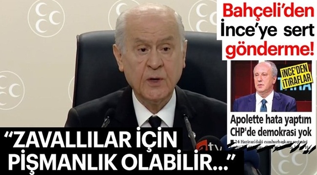 Bahçeli, "Ülkemize yönelik algı operasyonları, sinsi oyunlar sandığa çarpmış ve tel tel dağılmıştır" dedi. Bahçeli ayrıca, "Ülkücünün fiyatı yoktur, ülkücülüğün pazarı yoktur. Pişman olacak söz söylemeyiz. 'Apolet tartışmasını fazla uzattım' diyen zavallılar için pişmanlık olabilir ancak bizde asla pişmanlık yoktur." diye konuştu.