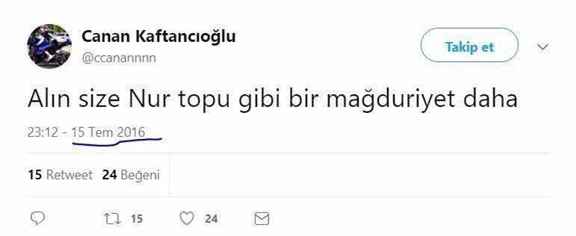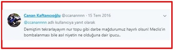 Kaftancıoğlu 15 Temmuz'da ise, darbecilerin katlettiği sivillere üzülmek yerine, çıplak elleriyle tankları dize getiren vatandaşlara 'Kafa kesen IŞİD'ci terörist' muamelesi yapıyordu.