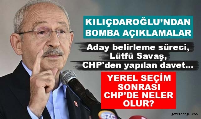 "31 Mart Yerel Seçim sonrası CHP’de neler olur?" sorusuna Kılıçdaroğlu, “Yani yerel yönetim seçim sonuçlarına bakılır. Yerel seçimlerde başarı sağlanırsa hep beraber alkışlarız. Ama yerel seçimlerde bir sorun çıkarsa o zaman tabii doğal olarak oturup hep beraber masaya yatırıp, neden başarı sağlanamadı diye düşünür, tartışılır yani” diye konuştu.