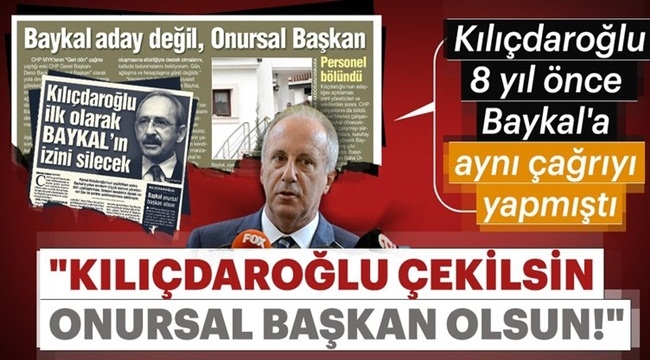 Muharrem İnce açıklamasında şunları kaydetti: Kendisi (Kılıçdaroğlu) isterse olağan üstü kurultayı toplayarak, benim genel başkan, kendisinin onursal genel başkan olabileceği teklifinde bulundum. 'Hayır' derse, örgüt kendisi çözecektir...