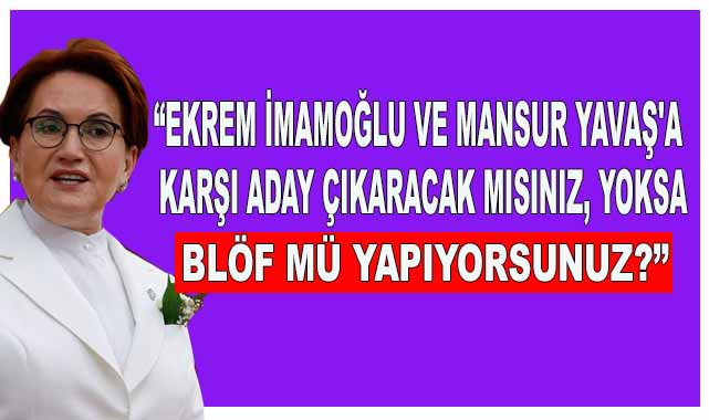 FOX TV ekranlarında İlke Karagöz'ün konuğu olan Meral Akşener'e ''Ekrem İmamoğlu ve Mansur Yavaş'a karşı aday çıkaracak mısınız, yoksa blöf mü yapıyorsunuz?'' sorusu yöneltildi. Akşener bu soruya ''Çok ayıp şeyler söyleniyor. Bu linçlenmede biz aydınlandık. Millet İttifakı'nı en fazla savunan liderlerden birisi benim. Benim hedefim 2023'te tek adam sitemini değiştirmek ve tekrar hukukun üstünlüğünü, adaleti, demokrasiyi, ekonomide eşitliği sağlamaktı. Blöf falan yapmıyoruz. Biz kuruluş ayarlarımıza dönüyoruz" ifadelerini kullandı.