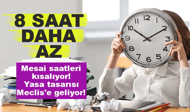 Çalışma saatlerine ilişkin yeni düzenlemeler için yoğun bir çalışma yürütülüyor. Türkiye'de hala yürürlükte olan 2003 tarihli İş Yasası'na göre haftalık çalışma süresi 45 saat olarak belirlenmiş durumda ancak hükümet, teknoloji ve çağın gereksinimlerine uyumlu olarak bu süreyi düşürmeyi hedefliyor.