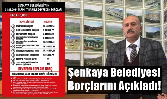 CHP Belediye Başkan adayı olarak girdiği 31 Mart yerel seçimlerinde başarılı bir sonuç alarak Belediye Başkanlık koltuğuna yeniden oturan Görbil Özcan , yaptığı 20 günlük çalışma ardından, belediyeye ait borçları Şenkaya Beledediyesi Resmi sosyal medya hesaplarından duyurdu.
