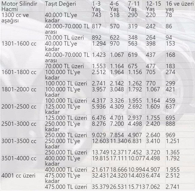 Cumhurbaşkanı Recep Tayyip Erdoğan tarafından onaylanan 7061 sayılı 'Bazı Vergi Kanunları ile Diğer Bazı Kanunlarda Değişiklik Yapılmasına Dair Kanun' Resmi Gazete'de yayımlanarak yürürlüğe girdi. Milyonlarca araç sahibinin ödeyeceği Motorlu Taşıtlar Vergisi (MTV) oranları netleşti. Motorlu Taşıtlar Vergisi (MTV) Kanunu'na eklenen hükümle taşıtın teslimi, ilk iktisabı ve ithalinde, hesaplanacak özel tüketim vergisi (ÖTV) hariç, KDV matrahını oluşturan değerler "taşıt değeri" olarak tanımlanacak.Otomobil, kaptıkaçtı, arazi taşıtları ve benzerlerinin vergilendirme usulü değiştirilerek, mevcut vergilendirme ölçütlerine taşıt değeri de eklenecek. Bu araçlarda MTV için uygulanacak yeniden değerleme oranı 1300 cc altı araçlar için yüzde 15, 1300 cc üstü araçlar için ise yüzde 25 olarak uygulanacak.31 Aralık'tan önce kayıt edilen araçlar için eski sistemde vergi alınacak. 1 Ocak 2018'den itibaren trafiğe kaydedilecek araçlar için taşıt değeri dikkate alınacak.İŞTE ARAÇ SAHİPLERİNİN 2018'DE ÖDEYECEĞİ YENİ VERGİ TUTARLARI...31 Aralık 2017'den önce tescil edilenler:2018'deki vergi tutarı: 743 TL1 Ocak 2018 sonrası tescil edilenler:Fiyatı 40 bini aşmayanlarda (1-3 yaş arası) 743 lira, fiyatı 40-70 bin lira arası olanlarda 817 lira, fiyatı 70 bini aşanlarda 892 lira olarak uygulanacak.(Ödenecek vergi tutarları 1-3 yaş arası araçları kapsıyor)------31 Aralık 2017'den önce tescil edilenler:2018'deki vergi: 1294 TL1 Ocak 2018 sonrası tescil edilenler:Fiyatı 40 bini aşmayanlarda (1-3 yaş arası) bin 294 lira, fiyatı 40-70 bin lira arası olanlarda bin 423 lira, fiyatı 70 bini aşanlarda bin 553 lira olacak.------31 Aralık 2017'den önce tescil edilenler:2018'deki vergi: 2 bin 284 TL1 Ocak 2018 sonrası tescil edilenler:Fiyatı 100 bini aşmayanlarda (1-3 yaş arası) 2 bin 512 lira, fiyatı 100 bini aşanlarda 2 bin 741 lira.-----31 Aralık 2017'den önce tescil edilenler:2018'deki vergi: 3 bin 598 TL1 Ocak 2018 sonrası tescil edilenler:Fiyatı 100 bini aşmayanlarda (1-3 yaş arası) 3 bin 957 lira, fiyatı 100 bini aşanlarda 4 bin 317 lira.------31 Aralık 2017'den önce tescil edilenler:2018'deki vergi: 5 bin 396 TL1 Ocak 2018 sonrası tescil edilenler:Fiyatı 125 bini aşmayanlarda (1-3 yaş arası) 5 bin 936 lira, fiyatı 125 bini aşanlarda 6 bin 476 lira olarak uygulanacak.-----31 Aralık 2017'den önce tescil edilenler:2018'deki vergi: 29 bin 483 TL1 Ocak 2018 sonrası tescil edilenler:Fiyatı 475 bini aşmayanlarda (1-3 yaş arası) 32 bin 431 lira, fiyatı 475 bini aşanlarda 35 bin 379 lira olacak.------.jpg)