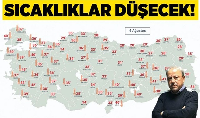 Eyyam-ı bahur sıcakları tüm yurtta etkisini sürdürüyor. Herkes sıcaklıkların düşeceği zamanı araştırırken dün 20 ilde termometreler 40 derecenin üzerini gösterdi. Hava sıcaklığının 40 derecenin üzerine çıktığı iller şu şekilde oldu: Şırnak: 45,3 derece, Mardin: 44,5 derece, Şanlıurfa 43,3 derece, Siirt : 43,1 derece, Batman: 42,6 derece, İzmir: 42,5 derece, Gaziantep: 42,4 derece, Diyarbakır: 42,3 derece, Eskişehir: 42,2 derece, Aydın: 42,1 derece, Mersin: 41,9 derece, Kilis: 41,9 derece, Manisa: 41,5 derece, Kahramanmaraş: 40.9 derece, Hatay: 40,6 derece, Karaman: 40.6 derece, Tekirdağ: 40,6 derece, Kırklareli: 40,5 derece, Adıyaman: 40,4 derece, Denizli: 40 derece Sıcak havalardan bunalan vatandaşların merakla beklediği haberi ise Prof. Dr. Orhan Şen verdi.