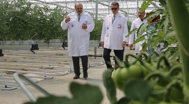 Termal Aquapark’ın ardından Vali Memiş’in bir sonraki durağı Termal Destekli Domates Seraları oldu. Ekimi bir süre önce yapılan fidelerin domates vermeye başladığı seralara üretim önlüğüyle giren Erzurum Valisi Okay Memiş’e yatırım hakkındaki bilgileri ise yine Başkan Orhan aktardı. Söz konusu projeyi KUDAKA işbirliğiyle hayata geçirdiklerini anlatan Orhan, “Seralarımızda özellikle kışın ısıtma işlemini termal sularımızla, termal suların yetersiz kaldığı dönemlerde ise biyokütle sistemiyle yaparak maliyeti minimize etmiş oluyoruz. Bu yatırımımız üretim açısından bir model teşkil etmiş olacak. Zaten yola çıkış amacımız da bu; bölgemizde termal destekli domates üretiminin yapılabileceğini göstermek. Bu doğrultuda yatırımcılarımıza da her türlü imkânı sunmaya hazırız” dedi.